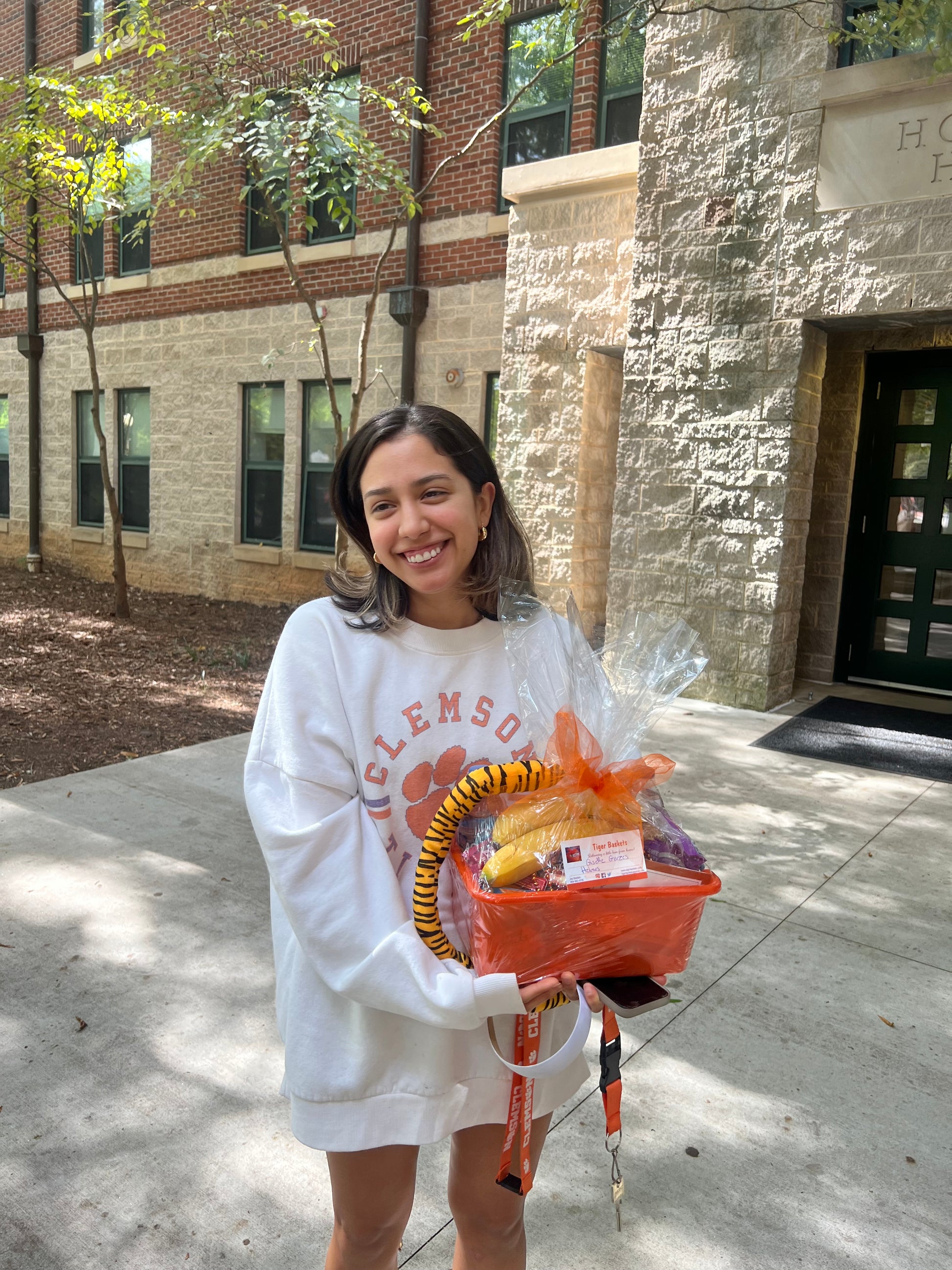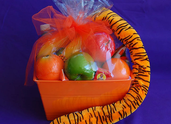 The Tiger Fruit and Healthy Snack Basket is for the student who enjoys munching on fruit and healthy snacks. It includes oranges, apples, bananas, raisins, trail mix, granola bars, fruit snacks, and bottled waters. It is great for midterms, finals, or anytime during the semester when you want to send them "a little love from home". We will include your personal message, shrink-wrap it, tie it up with a bow and add one of our plush tiger tails before we deliver it to your student at their dorm or local residence.