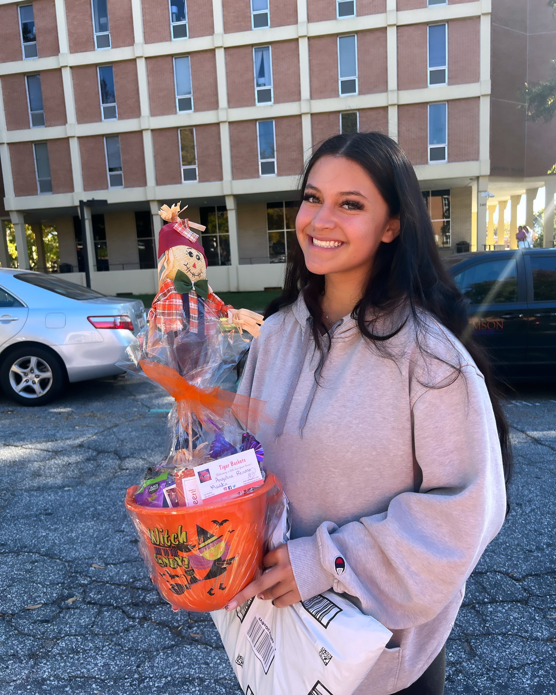 Our Happy Halloween Basket is delivered just prior to Halloween. It is packed with assorted Halloween themed candy and treats, a Halloween goblet, cotton candy, and popcorn. We add your personal message on a Happy Halloween card, shrink wrap it, tie it with a bow, top it off with a scarecrow and deliver it right to the dorm or local residence of your Clemson student the week of Halloween.
